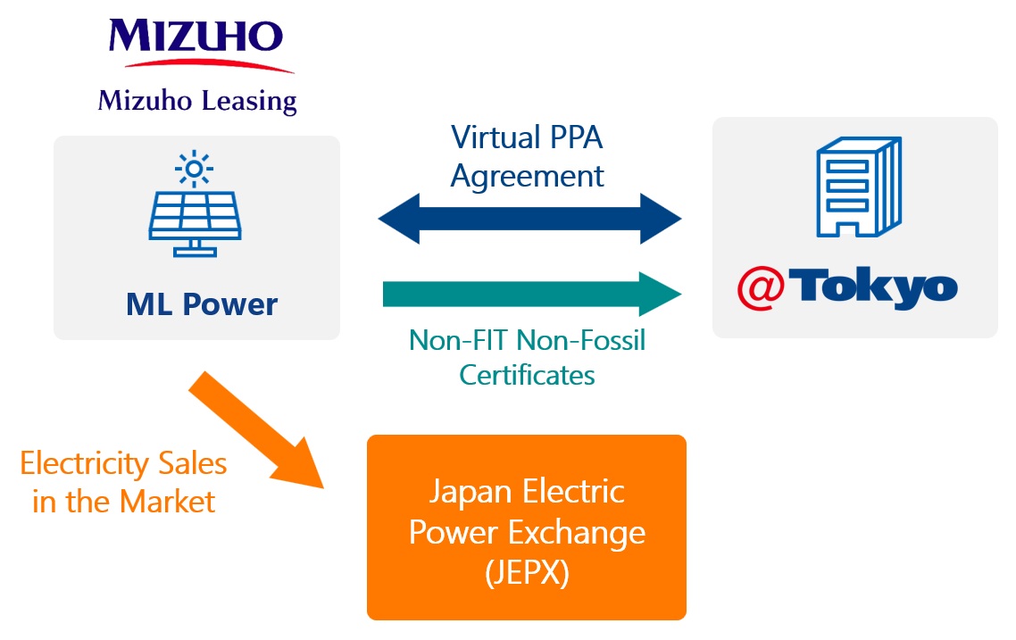 AT TOKYO Corporation (Headquarters: Koto-ku, Tokyo; President & Chief Executive Officer: Tatsuya Izumida; hereinafter “AT TOKYO”), together with ML Power Company, Limited (Headquarters: Minato-ku, Tokyo; President & CEO: Nariaki Sakurai; hereinafter “ML Power”), a wholly owned subsidiary of Mizuho Leasing Company, Limited (Headquarters: Minato-ku, Tokyo; President & CEO: Akira Nakamura; hereinafter “Mizuho Leasing”), concluded a basic agreement on a Virtual Power Purchase Agreement (Virtual PPA)*1 on March 17, 2026.